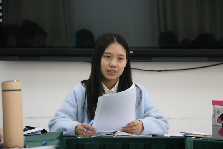善于批评与自我批评是党的优良传统。大会伊始,徐金代表支部班子开展批评与自我批评,在肯定党支部建设取得突出成就的同时,总结了党支部在加强党员教育管理、加强自我建设等过程中存在的不足。她强调,学生党员要按照“四讲四有”标准严格要求自己,提高自身积极性与集体意识,提高责任担当意识与思想觉悟,时刻不忘作为学生党员的责任,做合格党员。随后,徐金进行了自我总结和自我批评,并积极鼓励党支部成员踊跃发言,深刻剖析自己学习工作中存在的不足,为下一步整改确定方向。学生党员逐一指出自身存在的问题,强调在今后的工作中,将继续提高思想素质和党性修养,对党的精神、政策、政治理论与时政进行深度系统性的学习,继续在宿舍、班级中发挥带头作用,及时掌握同学的生活动态与思想动态,提高团结意识与集体意识,发挥学生党员的先锋模范作用。此外,巩固以身边优秀党员为例,指出学生党员存在的问题,引导学生积极开展自查自省,加强对自身的认知。张婷提出了对党支部的意见和建议,表达了对党支部建设和党支部成员未来发展的希望。最后,党支部成员按照党章标准,以“四讲四有”为标准,公平公正地完成民主评议工作。