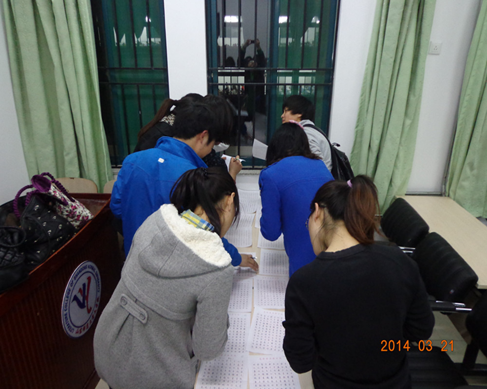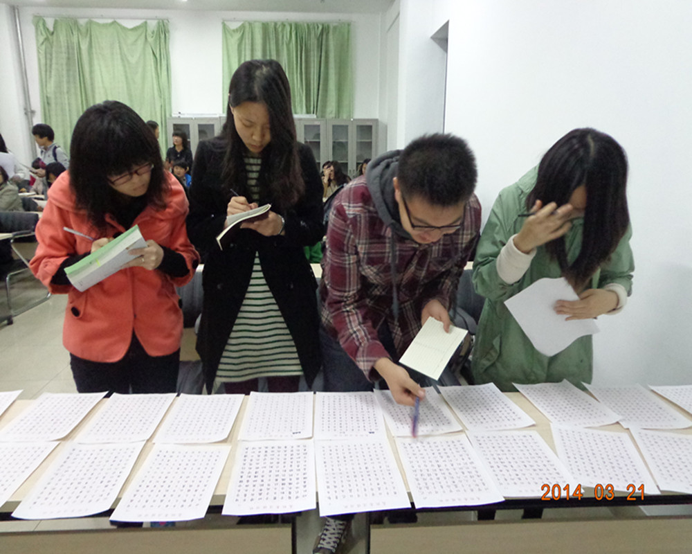 为调动同学们练字的热情,提高同学们的书法素养。3月21日晚,文学院于长清校区综合教学楼A区会议室举行“钢笔字每周一评”特色活动。本次活动由卓越班班长杜鹃、团支书刘俊洁以及宣传委员蔡翌负责,2012级卓越班50名同学参与评比打分,现场气氛十分活跃。